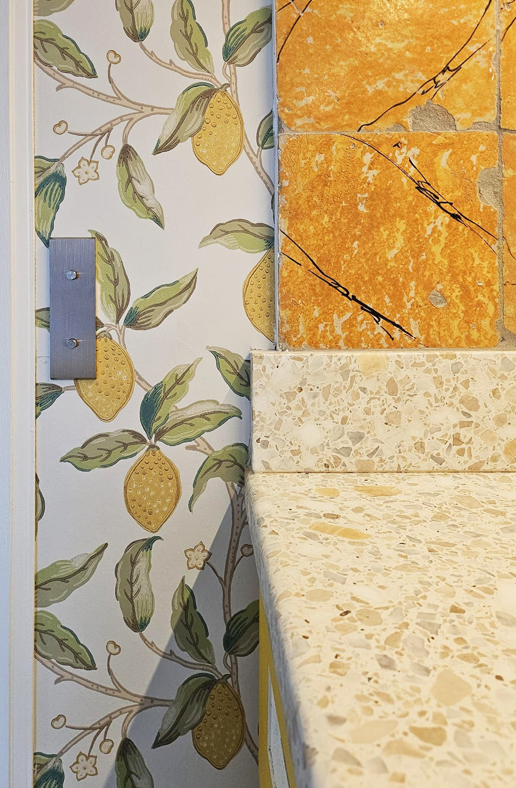 Terrazzo, bois, métal, carrelage, parquet massif, textiles, tapisserie