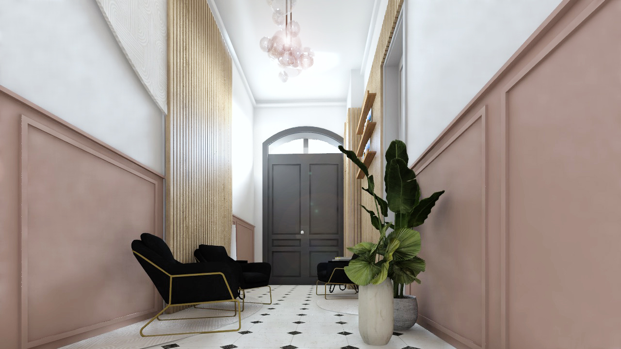 Ce projet prévoit l’aménagement d’une salle d’attente pour un cabinet d’avocat dans le hall d’attente d’un immeuble de charme dans le centre ancien de la ville de Châteaurenard.