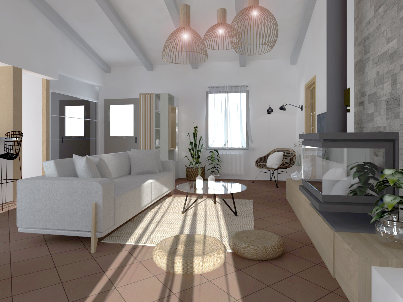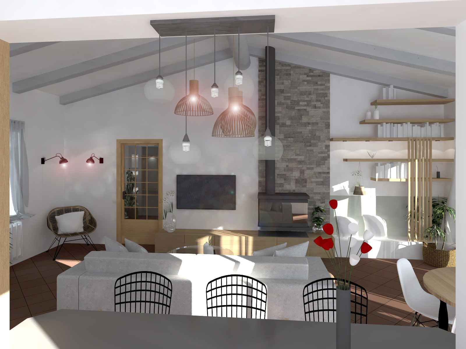 La volumétrie de ce séjour à l’ambiance résolument traditionnelle laisse rêveur. Cependant, les clients, désireux de moderniser leur intérieur, souhaitaient mettre en place un poêle à bois et démolir leur ancienne cheminée.