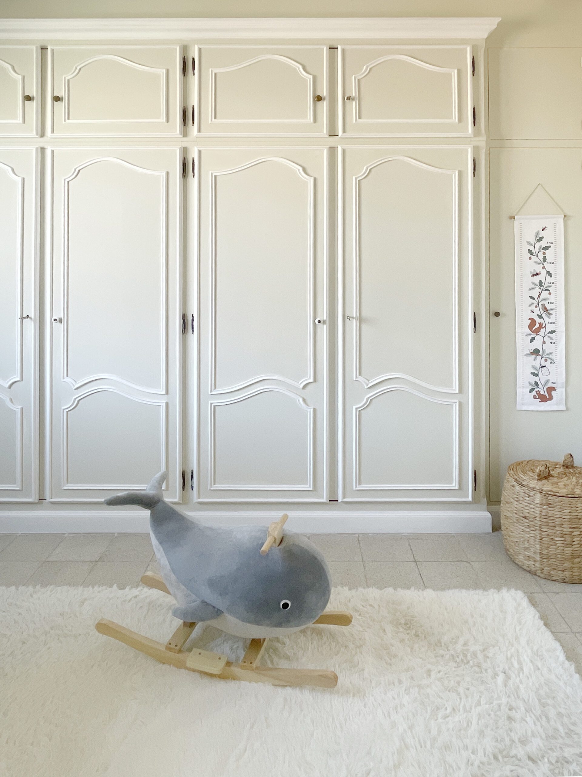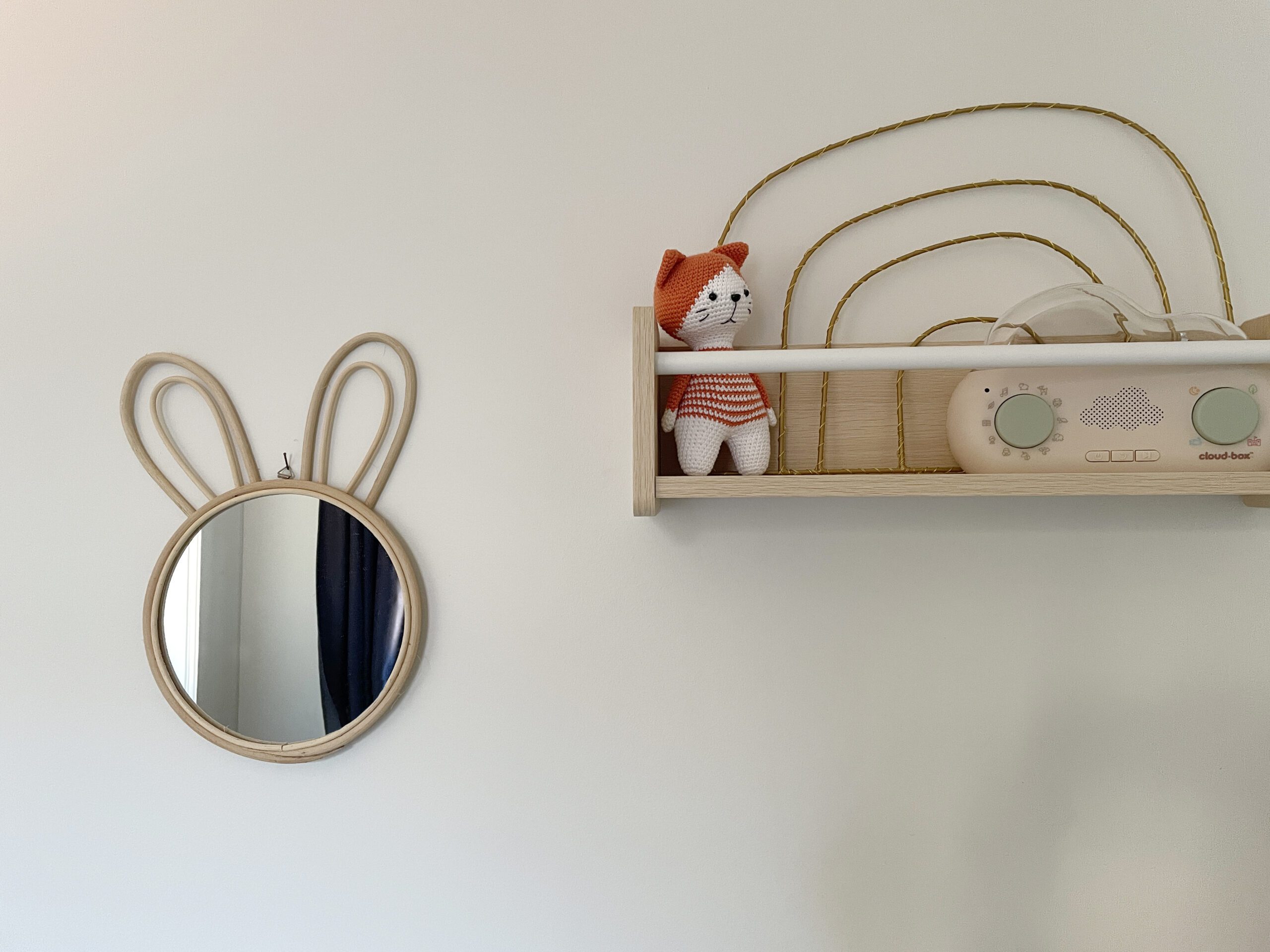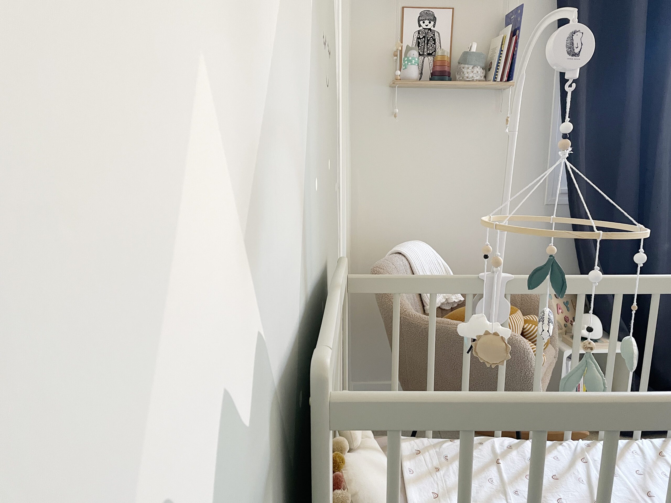 Les trois chambres ont des identités marquées : une teinte, un élément décoratif et des rangements adaptés.