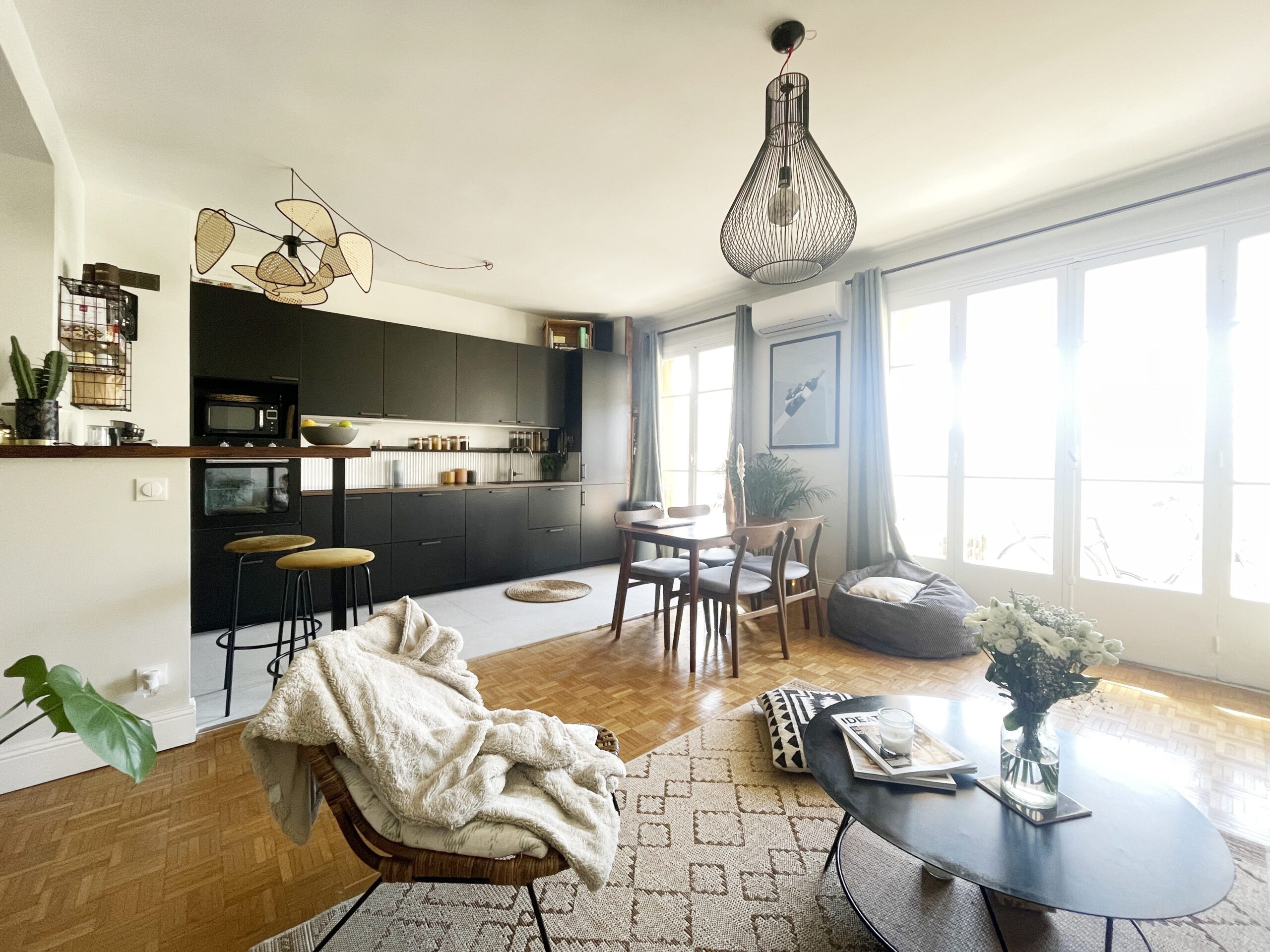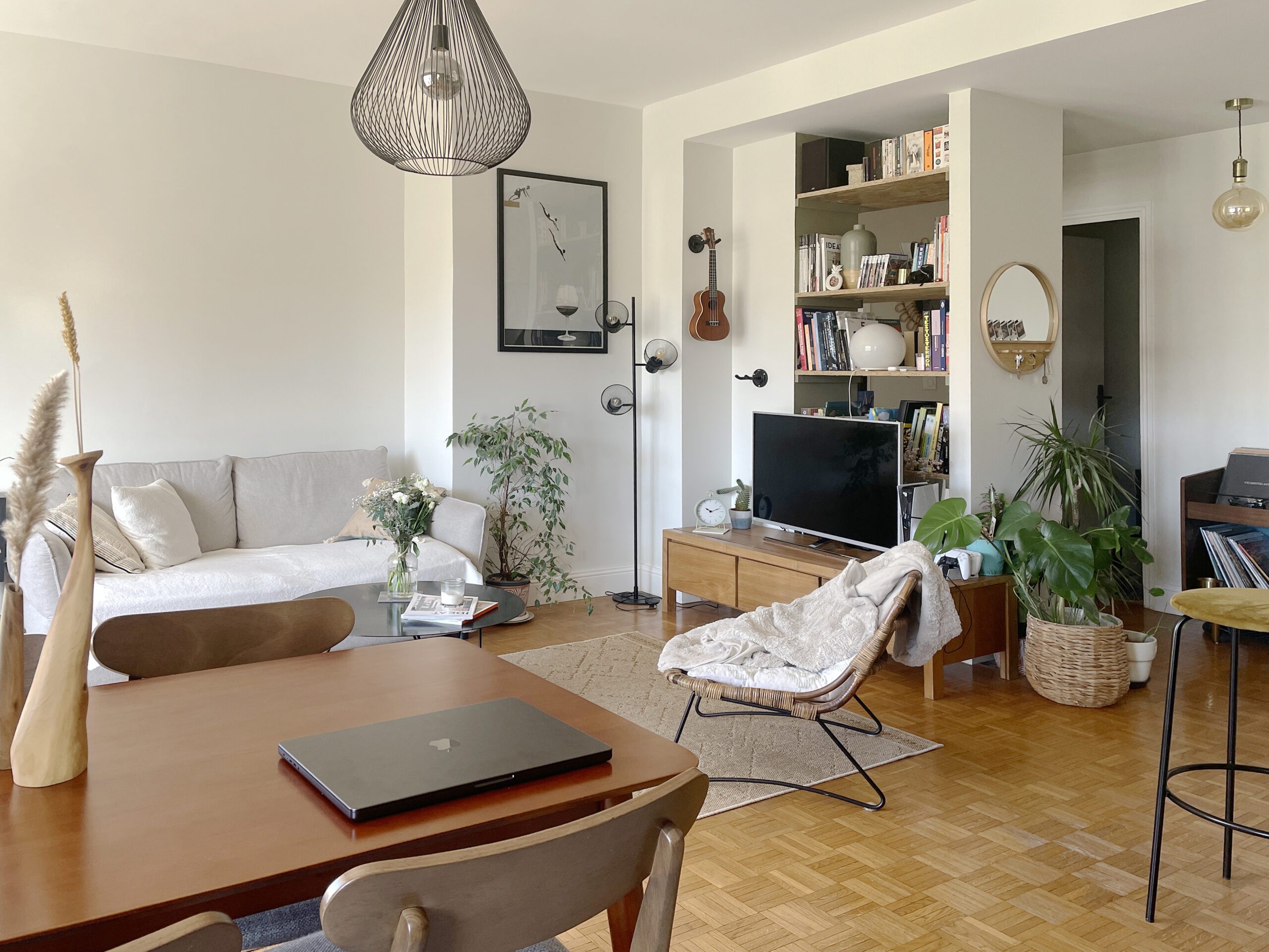 Cet appartement traversant des années 1950, dans son jus, offrait un potentiel intéressant. Le parquet, parfaitement conservé, les volumes et la luminosité en faisaient un petit bijou brut à façonner.